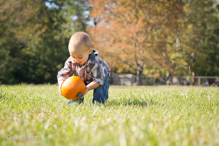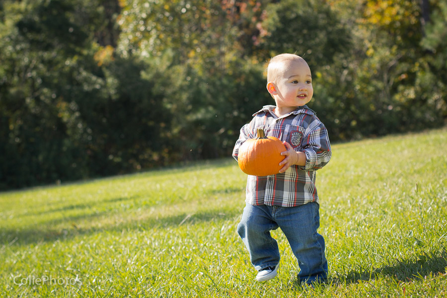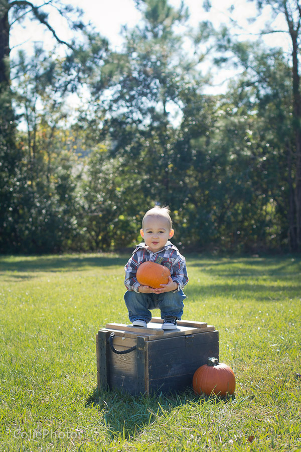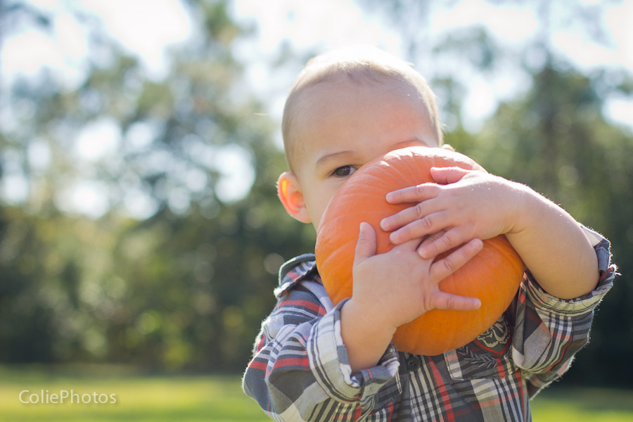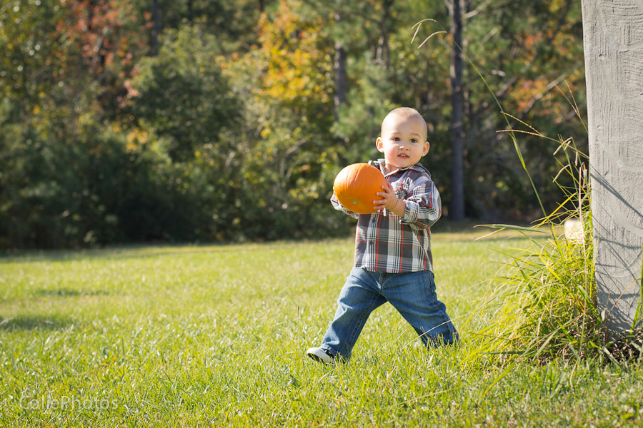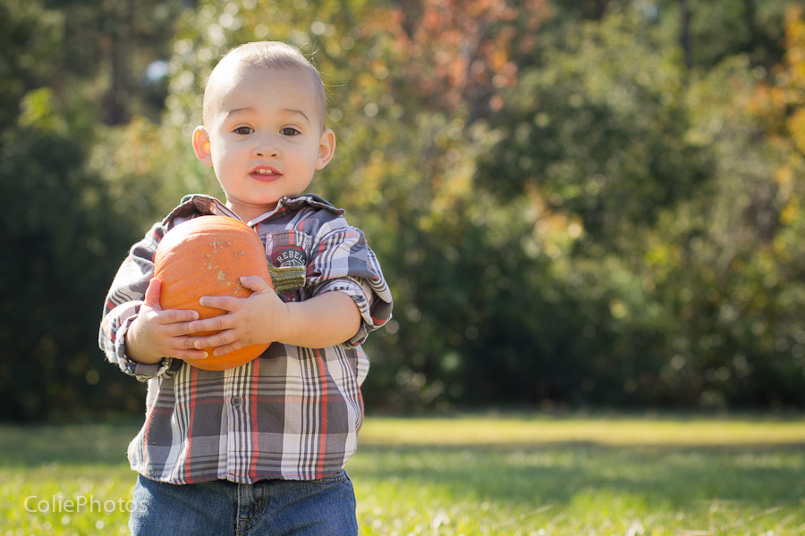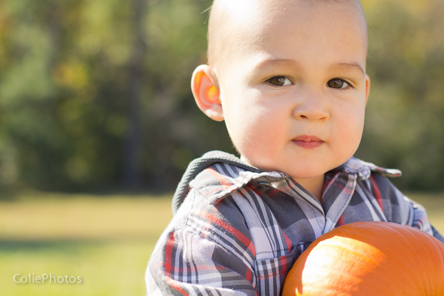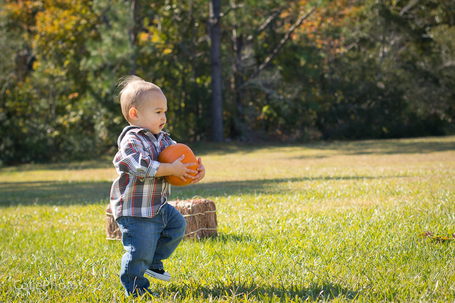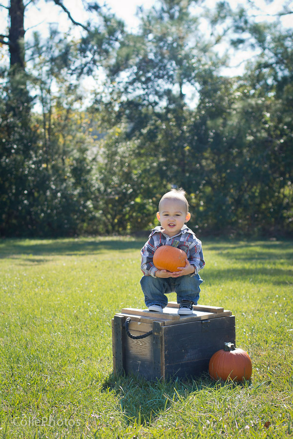 I bought two pumpkins for these newborn sessions last month, and Kenny has been eyeing them ever since. When we carved jack-o-lanterns for Halloween and put an candle inside, he went crazy (yes, he loves fire!) and even learned a new word: “puk” for pumpkin! So you can only imagine how thrilled he was that I actually let him hold the pumpkins for his 15 month session!